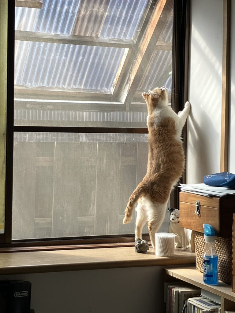温かい日 今日は暖かいようだ。 ポリカから流れる雪解水の雫が窓際に映る。 それを目で追う、ビクター犬を押しのけ、 捕まえようとする。 どうしても捕まえたいらしく身体を伸ばす。 それでも捕まらないようでソワソワしている。 2026.02.13 投稿先 一覧 ← 過去の投稿へ