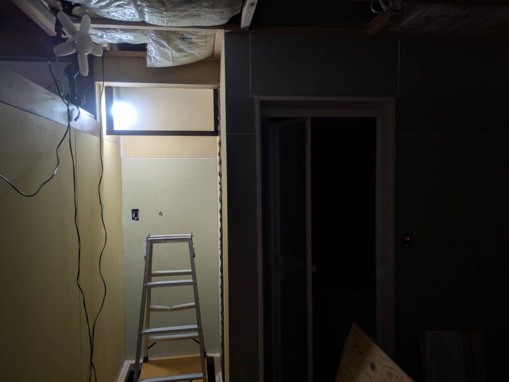 L字のケーシング枠になってたので石膏ボードを何度か調整しながら固定した。