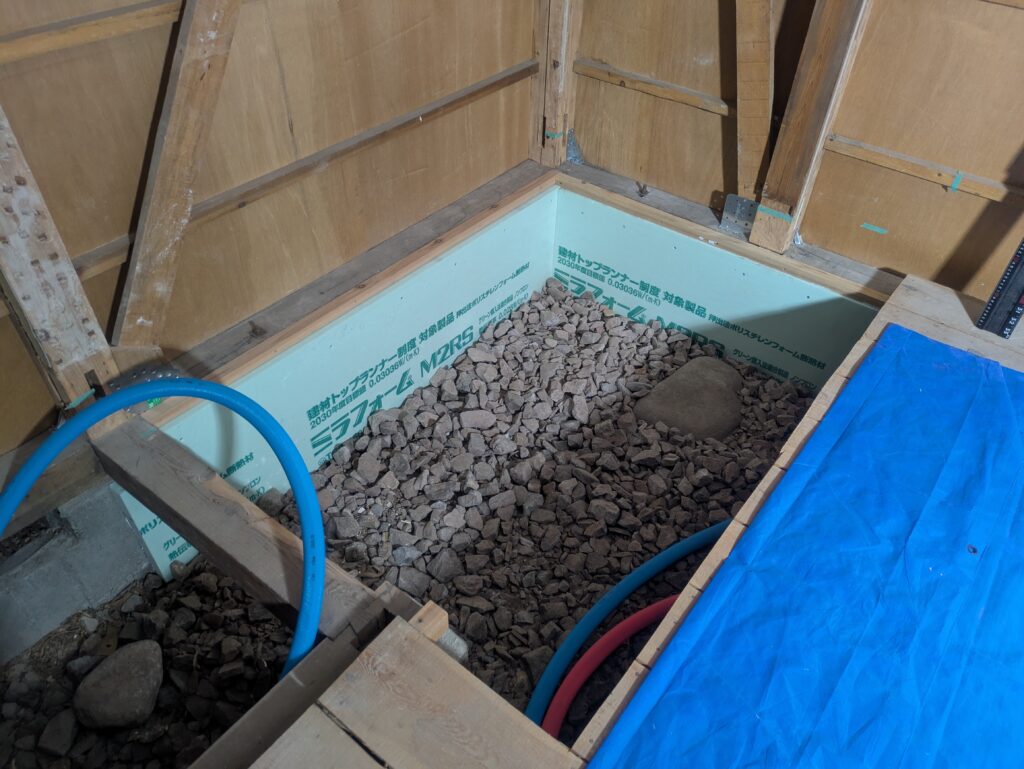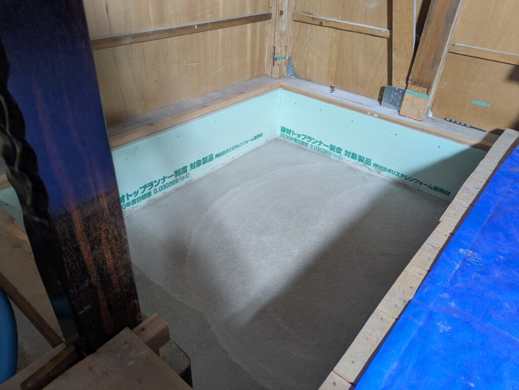 コンクリ打ちは楽しい作業なのだが、腰に余力を残していたいのでお任せした。基礎立ち上がり断熱を一部先行してたので綺麗に仕上がっている。そして作業する上でも平らになったのはありがたい。