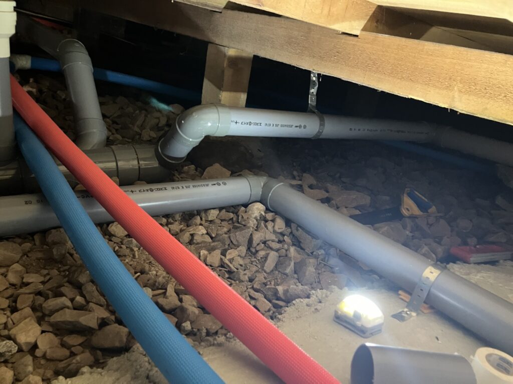 小さな空間の中、設備屋さんは床下、電気屋さんは天井、自分は床上をそれぞれ攻める。黙々と攻める。