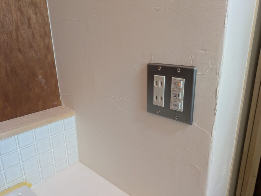 コンセント、スイッチ、照明、換気扇を取付けてもらう。
