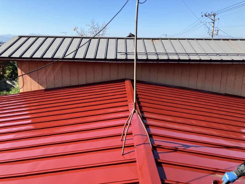 棟→軒先の順で繰り返し塗る。